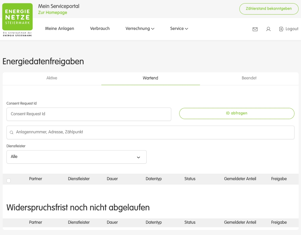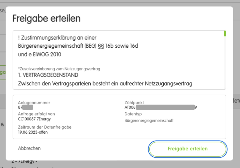 Die 7Energy - BEG oder EEG Steiermark RID-Nr. erhält einerseits im Hintergrund eine Meldung vom Netzbetreiber, dass die Datenfreigabe erteilt wurde und andererseits muss nun der Netzbetreiber noch die Abschlussmeldung schicken.