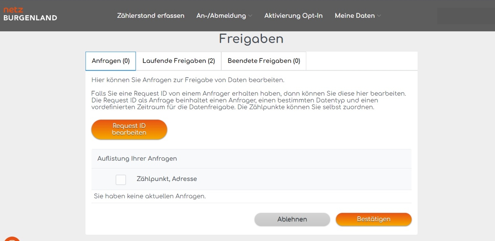 Nachdem du den "Bestätigen" Button gedrückt hast, sind deine Anfragen nun leer und die gerade bestätigten Anfragen sind in "Laufende Freigaben" zu finden.