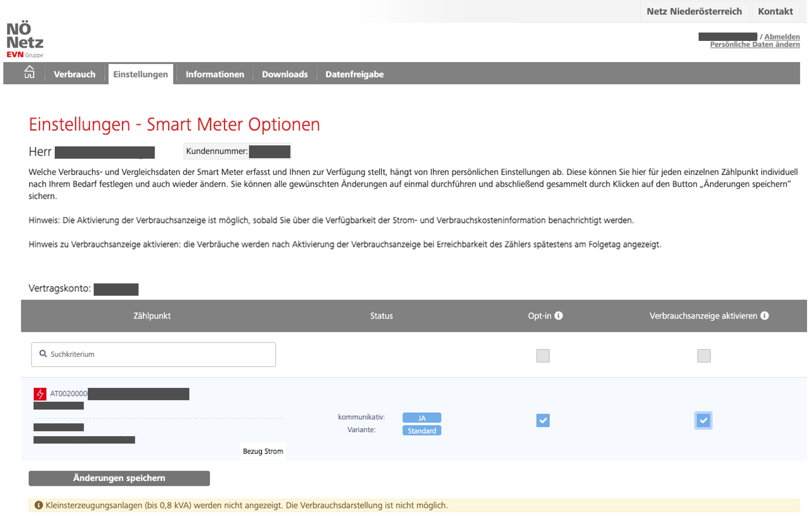 Bei Netz Niederösterreich muss man den Smart Meter im Webportal zuerst auf "kommunikativ" umstellen, bevor man die Datenfreigabe machen kann. Wer das schon gemacht hat, kann direkt zu [Schritt 5](#5.Datenfreigabe) gehen.&#x20;