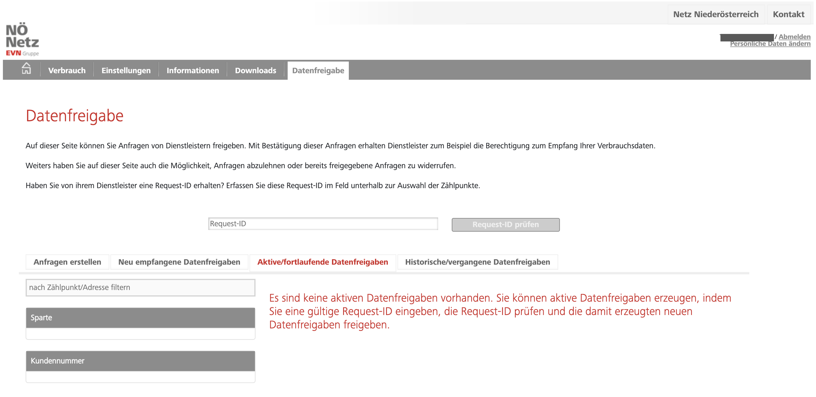 Wenn es noch keine Anfrage zur Datenfreigabe gibt, sieht das Webportal wie folgt aus:&#x20;