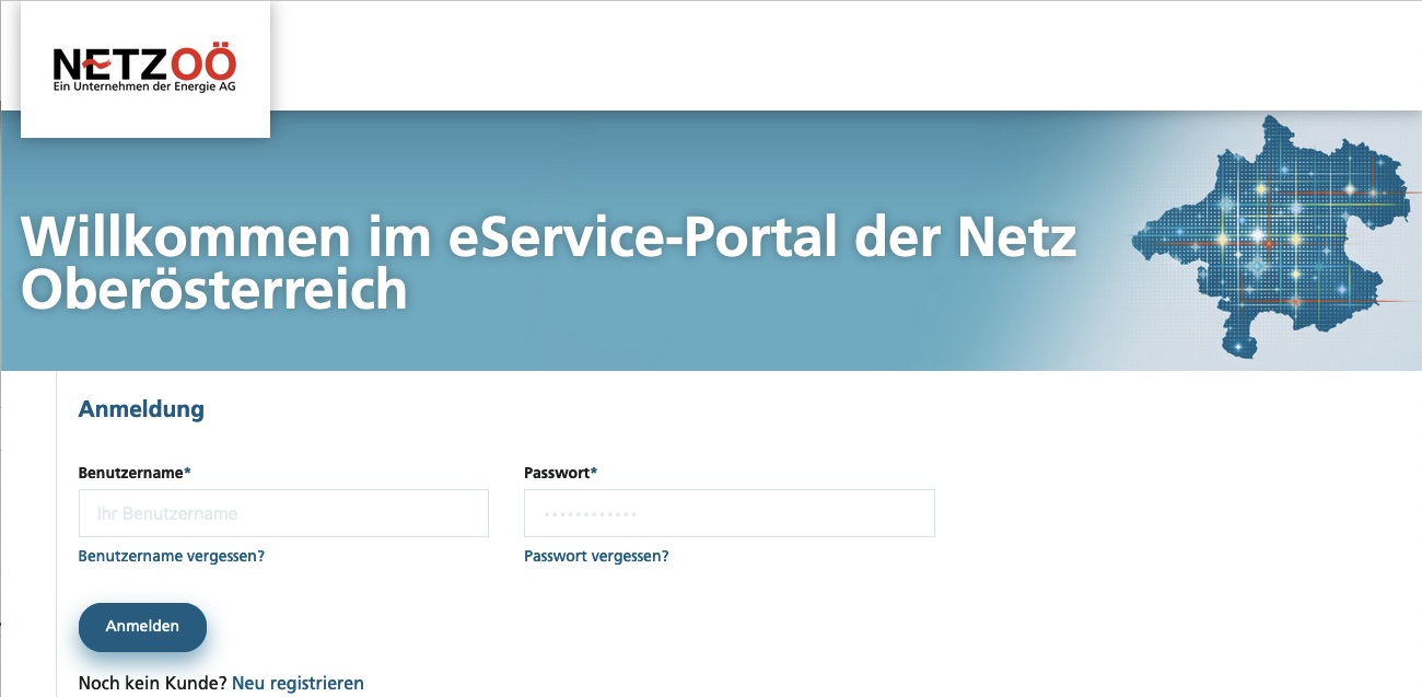 Netz Oberösterreich betreibt ein Smart Meter Webportal mit Login für ihre Kunden, bei dem man sich zuerst registrieren muss. Für die Registrierung benötigt man die E-Mail Adresse, Benutzernamen, Kennwort, Zählpunkt, Zählernummer sowie ein zusätzliches Identifikationsmerkmal (am Besten funktioniert die Kundennummer, zu finden auf Schreiben von Netz Oberösterreich).